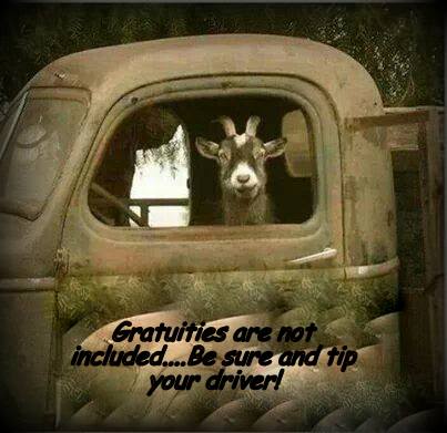 3. We will run a single credit card for the entire group as you board the bus (or you can pay in cash!) - so that we can hit the road sooner and start having fun faster, rather than be messin' with credit cards or cash for each individual or couple on the bus.....Then everyone else kin pay back yer designated 'treasurer...'
